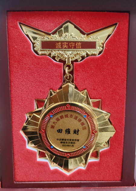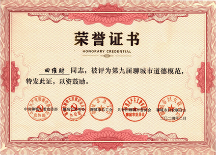 热烈祝贺公司法人田维财,被评为聊城市第九届诚实守信道德模范!